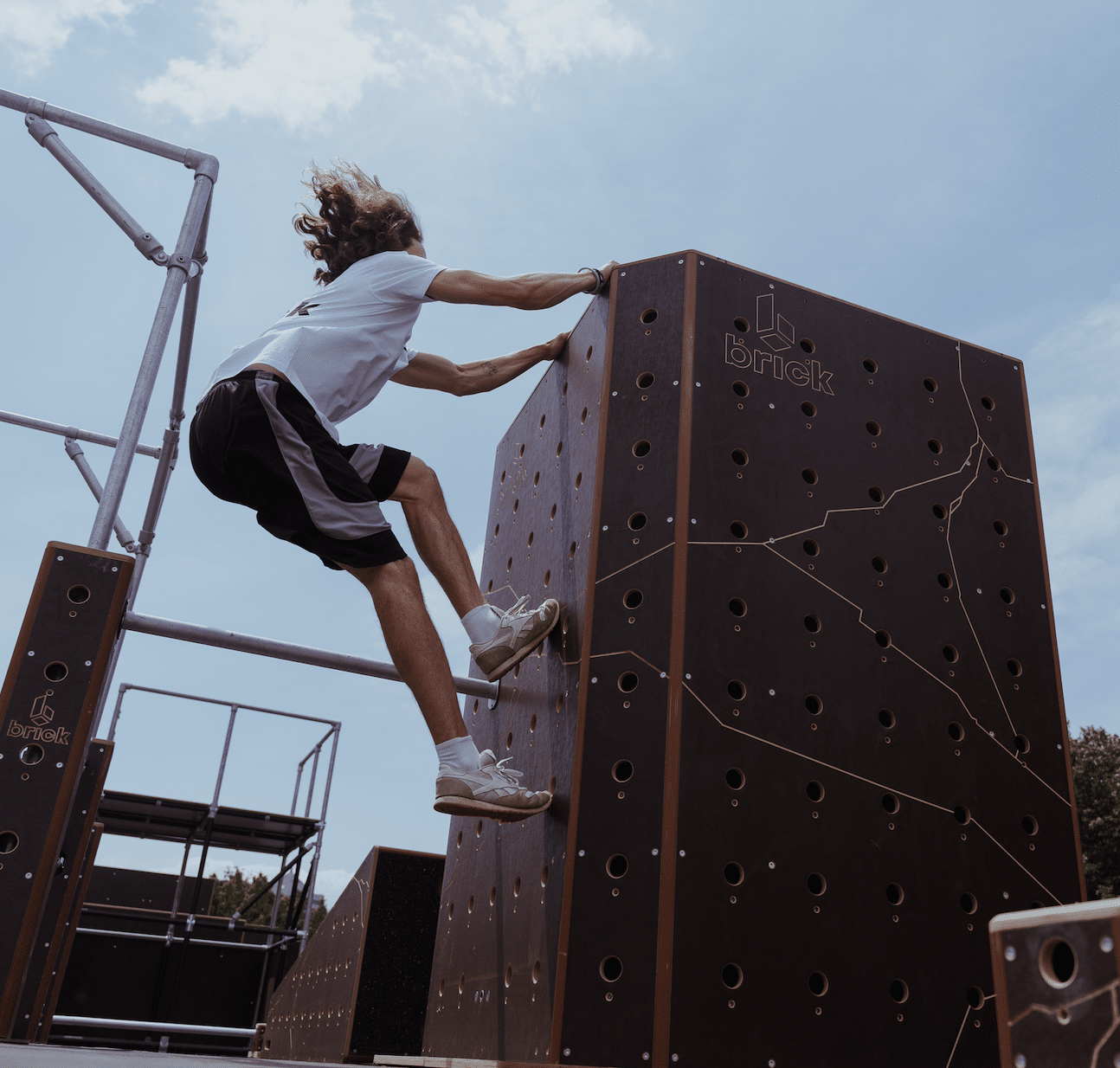 Les modules Brick sont fabriqués en bois et en métal pour résister durablement au poids et aux mouvements de vos traceurs. Équipé de rubans antidérapants en caoutchouc recyclé, notre équipement assure stabilité et intégrité aux obstacles.